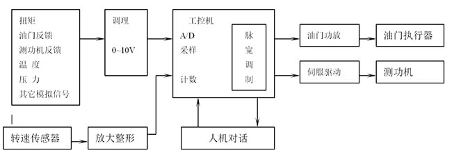 計(jì)算機(jī)根據(jù)采集的數(shù)據(jù),綜合用戶面板的給定狀態(tài),經(jīng)過(guò)一系列控制算法的運(yùn)算,變成直接推動(dòng)測(cè)功機(jī)的脈沖信號(hào),實(shí)現(xiàn)了計(jì)算機(jī)直接數(shù)字控制(DDC)。
